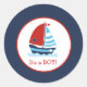 Red and Navy Sailboat Round Custom Favour Sticker