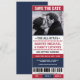 Sports ticket themed save the date invites are cool and fun! They look like a sports ticket to celebrate the event of the season. Colour palette in red and navy. Contact for custom colours.