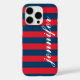 Red and Navy Stripes Custom Script Monogram Name Case-Mate iPhone Case
