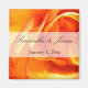 Attractive flaming orange and red rose wedding magnet personalized with your names and date.