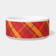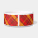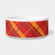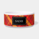 Tartan / plaid style pattern in red and orange colour scheme. There is also a black banner with a personalizable text area for pet's name.