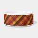 Plaid / tartan pattern in autumn colour scheme including red, orange and brown colours with a little bit of yellow. There is also a personalizable text area for a name.