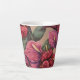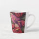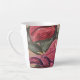 A latte mug printed with a hand-drawn red and pink anthurium design.
