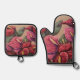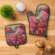 This oven mitt set is printed with a hand-drawn red and pink anthurium design.