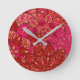 Red and pink mandala pattern round clock