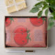 Tomato drawing. Custom tissue paper sheets. Pink and red plaid pattern background.