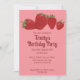 Realistic style illustrations of ripe red strawberries are set against a pink background on these invitations that are suitable for parties for adults or children. These invites are easy to customize with all of your party details. The reverse side has a coordinating gingham pattern.