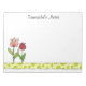 This notepad has delicate pink and red tulips and a green spotted border with text above for you to personalize.