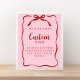Whimsical Pink and Red Girl Baby Shower Custom Sign – Add Your Text Sign Template - Retro Polka Dot Design - Quirky Funky Squiggle Coquette Bow Frame