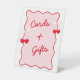 Red and Pink Wavy Cherry Bow Cards and Gifts Pedestal Sign