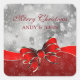 Silver and red Christmas sparkles and glitter, red bow with gold accents