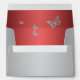 This red and silver floral with butterflies linen envelope matches the wedding invitation shown below and is designed to fit the invitation and thank you card. Other paper choices are available.
