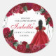 Red and Silver Floral Quinceanera Classic Round Sticker