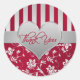 Red and Silver Heart 1.5" Round Wedding Sticker
