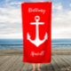 Red and White Anchor Personalized Script Towel