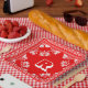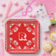 Red and white bandana handkerchief pattern with a personal monogram.