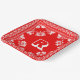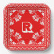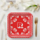 Red and White Bandana Design With Monogram Paper Plate