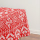 This fun and festive tablecloth features a winter fair isle pattern on a red background. This is perfect for Christmas and the winter holiday.
