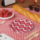 Red and White Christmas Snowflakes Chevron Pattern Paper Plate