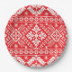 Red and White Fair Isle Christmas Pattern Paper Plate