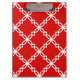 Red and White Fancy Quatrefoil Pattern Clipboard
