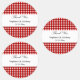 Red and white gingham pattern bbq wedding thank you labels. Two shades of red stripes.
