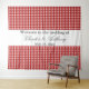 Red and white gingham pattern bbq wedding welcome tapestry. Two shades of red stripes.