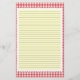 Red and white Gingham Stationery with optional lines. Use the customize it button to change the background colour behind the lines. Delete the lines for the unlined option.