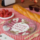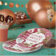 Get in the holiday spirit with these cute watercolor gnome paper plates featuring a red and white Nordic gnome with text that says "gnome sweet gnome." The background has a red and white fair isle pattern.