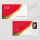 Red and White Gold Decor with Monogram and Photo Business Card