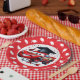 A Fun And Colorful Red And White Kids Graduation Paper Party Plates Designed With A Graduating Sports Car