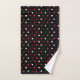 Red and white hearts on black bath towel set