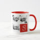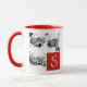 This modern design, in elegant red and white, has space for three square photographs and a red square with white text for your monogram. The featured black and white photo's are of 'Simba' the cute tabby cat waking from his sleep taken by the artist and designer, Karen McFarland. Simba would be more than happy for you to purchase the design as is if you think he's a cutie or know a cat lover.