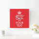 Red and White Keep Calm and Your Text Square Wall Clock