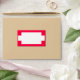 An envelope with a stylish black and white address panel with a drop shadow which gives the illusion of a stick on label. A smaller version of the label is repeated on the back which can be customized with your return address.