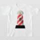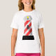 A really cool looking lighthouse design. This lighthouse is red and white striped and really makes for a great effect. This lighthouse has a black base, the red and white striped body and then the light at the top. This red and white lighthouse design looks great on this girls t-shirt. Perfect for yourself or as a gift