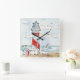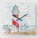 Red and White Lighthouse Scene Square Wall Clock