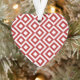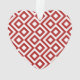 This stylish red and white geometric pattern is an original ornamental design. White meanders angle around red diamonds containing white diamonds. Red zigzags provide subtle separation between the winding paths.
