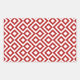 This stylish red and white geometric pattern is an original ornamental design. White meanders angle around red diamonds containing white diamonds. Red zigzags provide subtle separation between the winding paths.