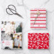Wrap your gifts with style this season using these three colour coordinated sheets. One features five of your favourite photographs, a short and sweet message and your name; the second a coordinating stripe pattern with longer text; the third a cheery pattern of modern white holly sprigs on red.