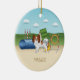 Red And White Papillon With Agility Equipment Ceramic Ornament