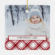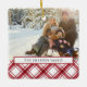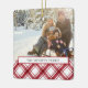This cute photo ceramic ornament features a red and white buffalo check plaid pattern with text and photos for personalizing.