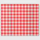 A wrapping paper designed with a red and white plaid pattern. Customize the white background among other options.