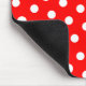 White dots against a bright red background. The white polka dot pattern is tilted at a diagonal slant.