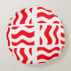 Do you need a new pouf style pillow for your sofa or bed? This round pouf throw pillow features a cool abstract striped pattern in shades of red and white. Artwork by Buttercup's Clothing and Collectables.