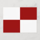 Two red rectangles and two white rectangles form a chequered pattern in this clean digital design.