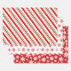 These festive wrapping sheets will bring a classic vintage touch to your Christmas holiday. The three patterns feature complimentary red and white snowflake patterns combined with a red, white and green candy cane striped design. Perfect for the holiday season!