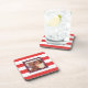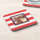 Red and White Stripe Pattern with Blue Border Photo Coaster.