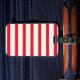Red and white striped luggage tag for a cute, modern and elegant nautical bathroom.