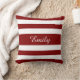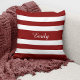 Red And White Stripes Pattern Name Monogram Throw Pillow